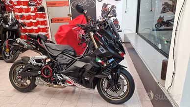 ULTIMO DISPONIBILE IN PREVENDITA. Edizione in tiratura limitata di solo 700 pezzi. Impianto di scarico sportivo Akrapovic per prestazioni migliorate Sospensioni posteriori Öhlins e Ammortizzatore di sterzo Öhlins per la massima maneggevolezza, pinze Brembo per una potenza di arresto di alto livello Coperchio frizione CNC Ducabike con una finestra di visualizzazione trasparente Spese di immatricolazione e messa in strada Euro 400