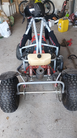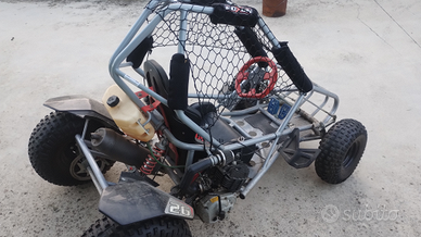 Vendo fantastico mini buggy 50cc 2t con cellula di protezione tubolare ammortizzata con sospensioni regolabili ad aria, motore Franco Morini, carburatore con filtro a potenza, doppio freno a disco, gomme da sterrato come nuove, sedile ergonomico regolabile con cinture di sicurezza.