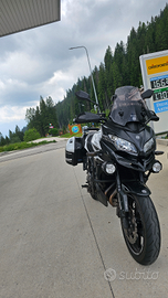 ome da titolo, vendo per passaggio a cilindrata superiore Kawasaki Versys 650 SE MAI incidentata e scaldata sempre a dovere prima dell'utilizzo. Anno:2020 Km:circa 45k Manutenzione: -gomme al 90% mitas touring force -cambiate pastiglie freni anteriori e posteriori -trasmissione completa D.I.D. serie oro -candele ngk cambiate 2025 -gioco valvole e pulizia corpi farfalla -tagliandata ogni anno 8k/10k km circa -tutti i tagliandi documentati Accessori kawasaki: -valigie originali Kawasaki in tinta moto -cupolino fumè (fornisco originale) -presa 12 volt originale -faretti supplementari -adesivi serbatoio e laterali -paramani Accessori: -paramotore rd moto -cavalletto centrale -pararadiatore nuovo da montare -posizioni, frecce e luci targa a led -becco anteriore -parafango ruota posteriore -traversino navigatore -bauletto givi blade -attacco borsa serbatoio givi Visibile a Pozzonovo (PD), passaggio a carico dell'acquirente. Prezzo trattabile in modo ragionevole!