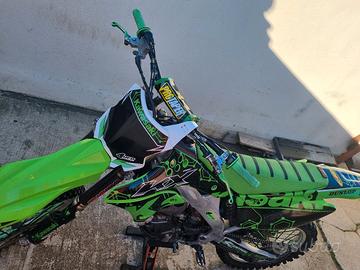 Vendo bellissimo kawasaki perfetto in tutto, ho appena montato la frizione completa nuova, campana nuova, plastiche e adesivi nuovi. Per maggiori informazioni o video in moto contattatemi in privato. Do qualsiasi prova con il vostro meccanico di fiducia. Do un kit in più di plastiche con gli adesivi in discrete condizioni, uno sterzo mai montato, una frizione come nuova, pedaline verdi mai montate e un paio di gomme al 85% Prezzo 2450 trattabile