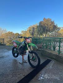 Vendo Kawasaki Kxf 450 anno 2014 la moto è pronta a l’uso da non fare nessun tipo di lavoro ,ha 80 ore da quando c’è stato fatto il pistone le valvole e la frizione,e sospensione.Da poco o cambiato cuscinetti ruota post e ant freni nuovi gommata e taglianda .Moto tenuta da amatore monta scarico akrapovic,cerchi faba Made in itali.Vendo per passaggio a moto un po più fresca