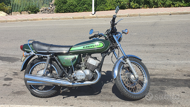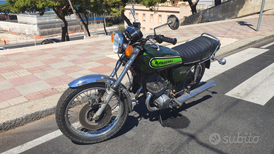 Kawasaki 500 Mach III del 75 vendo a €. 8500 non trattabili. La moto è conservata, non restaurata, e in quanto tale porta i segni del tempo. Funzionante, meccanica a posto, impianto elettrico parzialmente da sistemare. No perditempo! Grazie