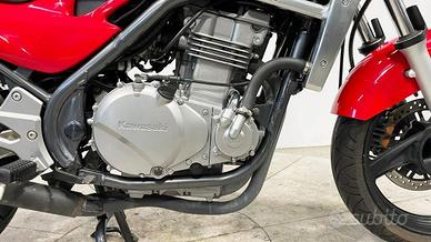 Motore: bicilindrico in linea da 499 cc, raffreddato a liquido, 4 valvole per cilindro, distribuzione DOHC, alimentazione a carburatori. Potenza: circa 50 CV ([?] 37 kW) a 9.000 giri/min. Coppia: circa 42 Nm a 7.500 giri/min. Trasmissione: cambio a 6 marce, trasmissione finale a catena.Telaio e ciclistica: telaio in acciaio a doppia culla; forcella anteriore telescopica da 41 mm con escursione di circa 120 mm; sospensione posteriore con monoammortizzatore regolabile nel precarico con escursione di circa 130 mm; ruota anteriore da 17'' con pneumatico 120/70-17, ruota posteriore da 17'' con pneumatico 140/70-17; impianto frenante con disco anteriore singolo Ø 300 mm (pinza a 2 pistoncini) e disco posteriore singolo Ø 220 mm (pinza a 1 pistoncino); ABS non disponibile.Altezza sella: circa 790 mm. Peso a secco: circa 180 kg. Serbatoio: capacità circa 18 litri.Stile: naked di media cilindrata, pratico e versatile, con un design semplice e pulito, ideale per l'uso urbano e per i principianti. La linea compatta e la sella bassa rendono la moto facilmente manovrabile, mentre le sue dimensioni la rendono agile in città. Carattere: moto dalla buona maneggevolezza, facile da guidare e con prestazioni adatte alla guida urbana e su strade extraurbane. Buon compromesso tra economia e prestazioni, adatta a chi cerca una moto affidabile, economica e abbastanza versatile.