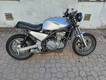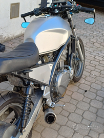 Vendo splendida kawasaki er 5 anno 1999 completamente customizzata café racer causa cambio tipologia di moto. Il mezzo è stato revisionato a luglio 2023, è stato rifatto tutto l'impianto elettrico, l'impianto frenante con tubi in treccia, la strumentazione. Sono stati cambiati gli ammortizzatori, la barra del manubrio, porta targa barracuda, sella fatta su misura, carburatori revisionati e rettificati a giugno 2022 cambiati tutti i getti e gli spilli con kit dinojet, sostiutite leva freno e frizione, rimossa cassa filtro e sostituita con doppio filtro a cono e montato scarico completo sc progect. Gomme anteriore e posteriore 80%. La moto necessita di essere ricarburata ed ènecessariosostituireil motorino d'avviamento, ma causa mancanza di tempo non sono riuscito ad eseguire i lavori. Moto per amanti del genere e appassionati di meccanica.