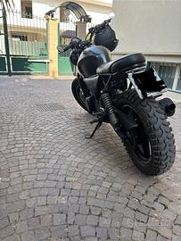 o Trasformazione scrambler/café racer curata nei dettagli: estetica minimalista, sella artigianale, scarico sportivo, manubrio basso, parafanghi custom