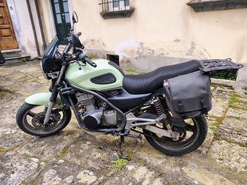 Per comprare la prima moto a mia figlia, vendo la mia compagna di mille avventure, ER 5 personalizzata scrambler, con pompa freni radiale e tubo in treccia, manopole riscaldate Oxford 5 livelli, presa USB 2 ingressi carica rapida, cupolino fumé, borse laterali morbide e portapacchi posteriore. Meccanicamente in ordine, sia con la manutenzione ordinaria che con quella straordinaria, esteticamente qualche segno dovuto all' età, revisione valida fino a luglio 2027... Valuto scambio con motard/enduro 50cc solo se in buone condizioni.