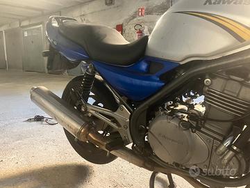 vendo Kawasaki ER5. la moto ha 21 anni e si presenta in buone condizioni. ha subito due scivolate. è funzionante al 100%. ho da poco sostituito le gomme ed il serbatoio in quanto quello vecchio si è arrugginito all'interno. ottima per chi vuole imparare e spendere poco.