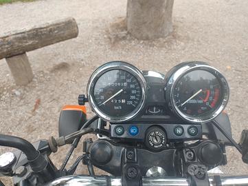 Tenuta molto bene, tubo freno in treccia, cuscinetti sterzo nuovi a rulli, tagliando effettuato in primavera, gomma posteriore nuova e anteriore seminuova (cambiata un paio di anni fa). Primavera scorsa pulito i carburatori e sincronizzati, gira perfettamente.