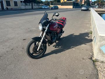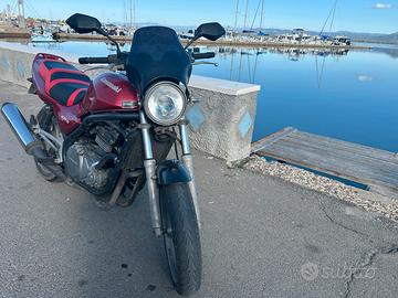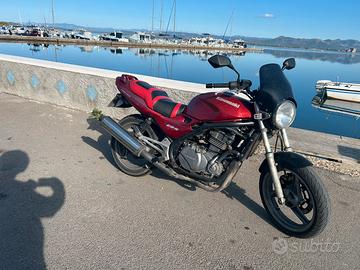 kawasaki 500cc, 50 cv, bicilindrico, (foto 12/2025) attualmente in uso, parecchi lavori di manutenzione eseguiti tra i quali carburatori, candele e bobine nuove, olio bardahl e tutti i filtri, sostituzione olio freno idraulico, pulizia e sostituzione liquido radiatore, raiser manubrio per posizione guida più comoda, gomme semi nuove con pochi km (posteriore 07/24) moto originale, revisione in regola fatta 30/07/24 . 56.000 km, 26 km/L, leggera, comoda agile ed economica. Ideale per trasformazione cafè racer, facilissima da guidare. Può essere registrata come moto storica.