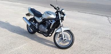 Vendo bellissima Kawasaki ER5 anno 2002, Gommata da poco, Perfettamente efficiente, Condizioni ottime Tagliandata da poco: olio +filtro + filtro aria+ cambio liquido di raffreddamento Cambiate le frecce ma le originali sono in mio possesso Viste le condizioni generali. considerando che parliamo di una moto che non necessità di altro se non di benzina e tanta strada. IL PREZZO NON E' TRATTABILE caratteristiche tecniche: La Kawasaki ER-5 è una naked da 498 cc, bicilindrica parallela, con circa 50-51 CV e peso intorno ai 180-196 kg. Motore e Prestazioni Tipo motore: Bicilindrico parallelo, DOHC, 4 tempi, raffreddamento a liquido 2 Cilindrata: 498 cm³ 2 Potenza massima: 50-51 CV (37 kW), 2 Coppia: Maggiore ai bassi regimi rispetto alla GPZ500S 1 Velocità massima: circa 180 km/h 1 Accelerazione 0-100 km/h: meno di 5 secondi 1
