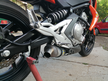 Vendo causa inutilizzo bellissima Kawasaki er6 n arancione metallizzato km 16500 mai incidentata, anno 2007 appena tagliandata, bollo pagato fino a maggio 2026, marmitta Leovince SBK omologata con db killer estraibile, frecce a led, portatarga, includo nel prezzo maniglie passeggero non visibili in foto come nuove, compreso di telaio porta bauletto originale Kawasaki, bauletto originale Kawasaki,+ marmitta originale, gomme Diablo 2 al 70 %, moto in perfette condizioni