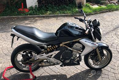 Kawasaki ER-6N del 07/2006, depotenziata a libretto, perfetta per chi cerca una moto maneggevole e divertente.