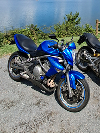 Vendo per inutilizzo, kawasaki er6n dell 2008 depo quindi guidabile con A2, la moto monta scarico diretto dominator, pompa freno radiale brembo, tubi in treccia blu, manubrio accossato piega bassa in ergal blu, portatarga barracuda, tamponi barracuda, varie viterie, tappi gomme e tappo olio blu in ergal lightech, valvole gomme a 90°, gomme montate da poco prima di comprare la nuova moto, la moto è marciante ma salta la 5a marcia causa scivolata sul lato sinistro, il lato sinistro e tutto graffiato, non ho foto e video recenti ma per info potete scrivermi