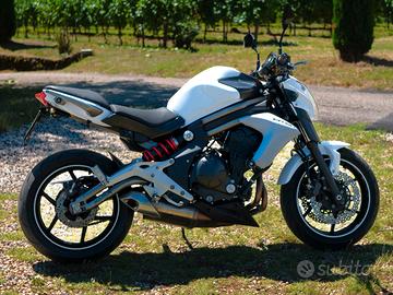 Kawasaki ER6N - 06/2013-38.160 km - Ottime condizioni Vendo per inutilizzo Kawasaki ER6N, immatricolata a giugno 2013, in ottime condizioni estetiche e completamente originale. Perfetta anche per neopatentati grazie alla sua maneggevolezza e facilità di guida. Manutenzione regolare: - Tagliandata ogni anno - Batteria sostituita lo scorso anno - Gomme ancora in buono stato Accessori inclusi: -Borsa da serbatoio -Manubrio e manopole originali (attualmente sostituiti con un manubrio più comodo per miglior comfort) Nota estetica: presente una piccola ammaccatura sul serbatoio, causata da una caduta da fermo del precedente proprietario. Nessun altro difetto, mai incidentata. Non valuto scambi