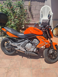 Vendo per passaggio ad altra tipologia, Kawasaki er6n prima serie del 2007. La moto ha appena fatto il tagliando olio e filtri e sostituito il gruppo trasmissione. Le gomme sono all 80 % . Presenta dei danni alle carene per via di alcune cadute e il pedale del freno risulta sollevato. vendo anche con staffa, piastra e baule, che da soli valgono 180 euro. La moto è adatta a chi vuole imparare. Prezzo trattabile