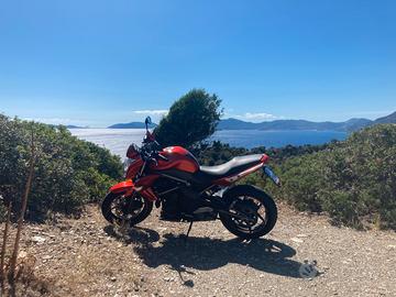 Sprintosa, divertente nelle curve , eccezzionale come prima moto. Vendo a soli 1500€ in virtù del chilometraggio, ma ne vale molto di più .