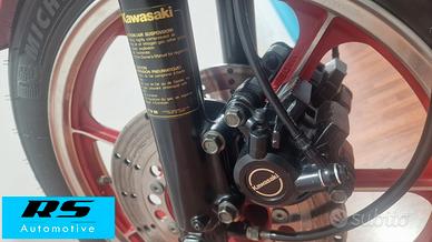 RS Automotive vi propone questa moto tra una vasta gamma di vere e proprie ICONE. Si tratta di una kawasaki GPZ 1100 dell'82 , la prima moto a montare degli iniettori come impianto di alimentazione carburante , completato da pochissimo, un restauro conservativo di più di 100 ore di lavoro che comprende una revisione accurata di impianto frenante , sospensioni anteriori , iniettori , serbatoio trattato con tancherite, pneumatici , tagliando completo di filtri aria , olio e carburante , batteria ecc.... ecc.... , targa originale dell'epoca , moto pronta alla targa oro !