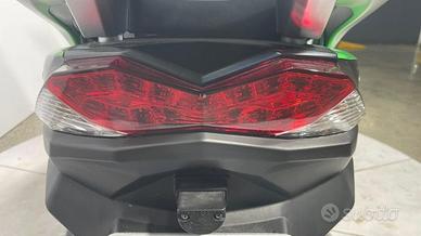 Motore: monocilindrico da 299 cc, raffreddato a liquido, 4 valvole, distribuzione SOHC, alimentazione a iniezione elettronica. Potenza: circa 28 CV (20,6 kW) a 7.750 giri/min. Coppia: circa 28,7 Nm a 6.250 giri/min. Trasmissione: variatore automatico CVT con trasmissione finale a cinghia. Telaio e ciclistica: telaio in acciaio a doppia culla; forcella anteriore telescopica da 37 mm; doppio ammortizzatore posteriore regolabile nel precarico; cerchio anteriore da 14'' con pneumatico 120/80-14 e cerchio posteriore da 13'' con pneumatico 150/70-13; freno anteriore a disco singolo da 260 mm e freno posteriore a disco da 240 mm; ABS di serie. Altezza sella: circa 775 mm. Peso: circa 191 kg in ordine di marcia. Serbatoio: capacità circa 13 litri ([?] 3,4 USA gal). Stile: scooter sportivo di media cilindrata con linee affilate e aggressive, frontale ispirato alle moto Kawasaki, doppio faro anteriore, strumentazione mista analogico-digitale e cura dei dettagli; vano sottosella capiente per un casco integrale. Carattere: progettato come scooter urbano e turistico sportivo, combina comfort e agilità con prestazioni brillanti; guida fluida e sicura grazie all'ABS e alla ciclistica solida. Ideale per chi cerca uno scooter pratico ma con personalità e spirito motociclistico tipicamente Kawasaki.