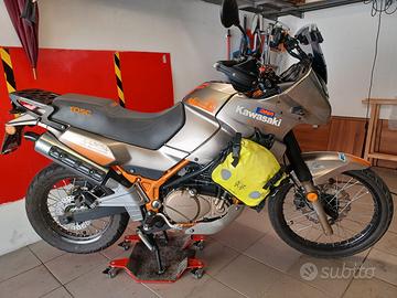 Con grande dispiacere, per motivi fisici, vendo KLE500 settembre 2006 pluriaccessoriata. Tagliando fatto marzo 2025 con anche verifica del volano, cambio liquido radiatore e liquido freni oltre al filtro ed olio motore e filtro aria. Revisione fatta maggio 2025. Sella personalizzata e rialzata da Giorgio Pisano di Bergamo. Gomme Pirelli Scorpion II 50%. Vedere foto ed elenco accessori montati. Sono compresi il carrellino sposta moto, antifurto ad arco, cavo in acciaio rivestito con anelli e bloccadisco Abus non c'è altro da aggiungere, solo da vedere e provare.