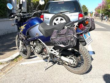 Kle500 del 2001 conservata perfetta km 43000ca. Volano e accensione sostituiti un paio di anni fa. Forcella con molle progressive e rinforzate. Cavalletto centrale. Manutenzione sempre regolare. Collaudo 8/2027. Appena rifatta sella e manutenzione carburatori. Disponibile : gomma posteriore nuova, portatarga originale, carterino pignone. Vendo perché ho problemi nella gestione del peso, ho 73 anni.