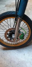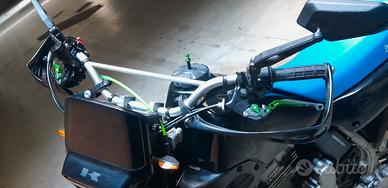 TUTTO DOPPIO (2 selle, 2 serbatoi, 2 impianti freno anteriore completi, 2 comandi freno frizione, frecce, 2 scarichi, completi, tutte le plastiche etc) allestimento originale moto storica FMI ed allestimento moderno e performante, freno anteriore disco maggiorato, pompa 2 pistoni, treccia aeronauticace pompa radiale, pastiglie nuove, scarico GPR inox omologato e performante, Pirelli Trail 2 anteriore e posteriore 90%, paramani Acerbis, frecce mini alogene, specchietti omologati, tutti tubi benzina e radiatore in silicone, sospensioni ant. e post. revisionate ed olio nuovo, filtri nuovi, tutti paraoli motore nuovi, dischi e molle frizione Heavy Duty, leve freno/ frizione regolabili ed antirottura , pedane maggiorate inox etc etc