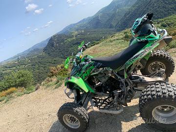Vendo potentissimo quad Kawasaki kfx 450 r pari al nuovo, nessuna pecca! Motore perfetto, telaio perfetto carene intatte e grafica in condizioni eccellenti, scarico LM, retromarcia, gomme 80% nuove,Parliamo di un quad da competizione.