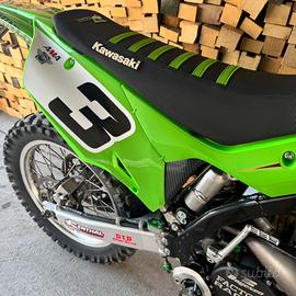Vendo KAWASAKI KX 125 (144) immatricolata nel 2003. Motore con 35H, mai usata in pista e tagliandi eseguiti sempre ogni 12/15H. La moto è stata completamente restaurata da cima a fondo: -Kit 144 ATHENA -Albero motore HOT RODS -Frizione completa PROX (mozzetto, cestello, piatto e molle) (dischi frizione 25h di vita) -Cambio revisionato -Pompa dell’acqua revisionata (girante, guarnizioni e cuscinetti HOT RODS) -Radiatori maggiorati NRTEAM -Aspirazione BOYESEN -Carburatore revisionato -Accensione lavorata ed alleggerita -Trasmissione 13/48 (catena 25h di vita) -Scarico completo HGS BUD RACING -Gas rapido CIRCUIT -Carter frizione e accensione BOYESEN -TUTTI i cuscinetti e guarnizioni del motore sostituiti -Piastre di sterzo ricavate dal pieno BUD RACING verdi e cuscinetti di sterzo sostituiti -Forcelle revisionate e paraoli sostituiti -Mono revisionato -Leveraggio revisionato e cuscinetti sostituiti -Cuscinetti ruote sostituiti -Manubrio RENTHAL rosso e leve freno/frizione NRTEAM verdi -Pinze freno revisionate -Dischi freno, pastiglie e tubi sostituiti -Impianto elettrico completo con termometro KOSO Tutto dimostrabile con fatture e foto dei lavori in fase di esecuzione. Vendo per inutilizzo dovuto al lavoro che non mi permette più di godermela come prima. Per maggiori informazioni contattare telefonicamente o su whatsapp al 3349893108 . Prezzo leggermente trattabile.