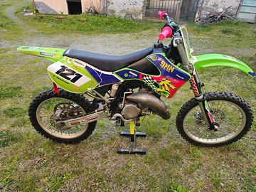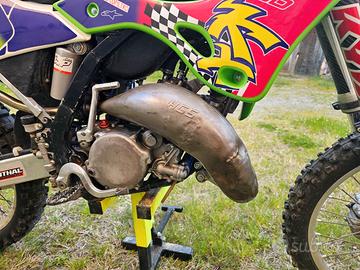 Vendo kawasaki kx 125 del 2002, completamente restaurata da zero, perfettamente funzionante. Blocco motore rifatto nuovo, dischi e pastiglie nuove, tubi radiatore in Silicone, espansione hgs (non in ottime condizioni ma ripristinata a nuovo ugualmente) silenziatore procircuit nuovo, manubrio fatbar 28mm, forcelle e mono rifatti, più altro che sicuramente dimentico... insieme sono comprese tutte le plastiche originali conservate. 23,5 ore all'attivo dopo il rifacimento totale. Contattare solo se veramente interessati.