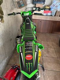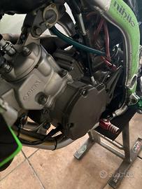 Vendo stupenda Kawasaki Kx 125 2007 secondo proprietario munito di libretto e ricevuta dell'acquisto nuova ..monta motore athena 144 con 20ore di utilizzo ,scarico completo pro circuit,pacco lamellare vforce3, cerchi Excel effettuato restyling nel 2023 portata a telaio , guaine cavi nuovi, tubi benzina,tubi radiatore in silicone, rifatte forcelle ,manubrio fatbar,leve freno e frizione racetech anti rottura ,trasmissione nuova,pedane maggiorate accossato e tanti altri accessori in ergal tra cui tutta la bulloneria nuova ..
