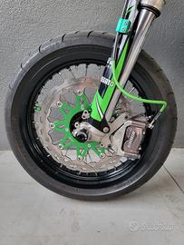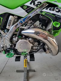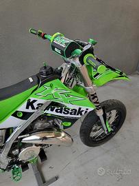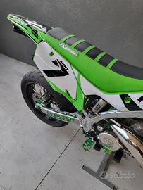 Vendo kx 125 tenuta maniacalmente. Moto con tripla omologazione con 2 posti a sedere Monta svariati pezzi fra cui: Ore totali 5 -cilindro athena 125 -carburatore mikuni allargato a 40 -pancia fmf fatty -silenziatore bud racing -tubi in silicone verdi -rapporti 13-45 -catena nuova oro -telaio cromato (trattato) -raiser ricavati dal pieno motard derivati da crf 450 inserto 28.5 -disco 320 -pinza accossato by vm racing -pompante radiale accossato -tubo in treccia accossato verde -spostapinza ricavato dal pieno vm -sospenzioni ant e post tarate motard -gomme 80% -leva freno post nrteam kxf 450 -leva cambio nrteam kxf 450 -pedaline accossato verdi -comando frizione Xfun -coperchio accensione carbonio -molti pezzi personalizzati a laser -kit restyling -grafiche personalizzate -vario ergal -portatarga pieghevole con faro led E molte altre cose non elencate.. Moto veramente unica nel suo genere introvabile messa meglio. Prezzo trattabile. valuto scambi con 125 o 450 motard che si possono chiamare tali. NO SOGNATORI NO AFFARISTI tm, sx, tc, gasgas, yz, rm, cr,