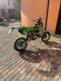 vendo kawasaki kx 125 omologato motard e guardabile a 16 anni la moto e perfetta e stata smontata a telaio verniciato il telaio di nero rifatto tutti i cuscinetti fatto anodizzare i foderi forcelle di oro e revisione completa alle forcelle piastre nere impianto frenante anteriore maggiorato con sposta pinza disco 320 pompa 16*18 e pinza anodizzata verde cerchi bicolore numerosi parti in ergal come pedane e le varie leve grafiche fatte su misura il motore ha 33 ore dal rifacimento completo dove e stato rivisto pistone Biella cuscinetti di banco e frizione e stato montato uno scarico procircuit la moto e davvero impeccabile di sicuro dimentico qualcosa