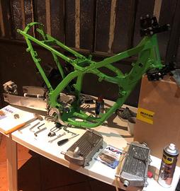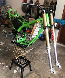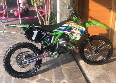 Kawasaki kx 125 anno 2000 replica splitfire pro circuit, rimessa a nuovo completamente, telaio e piastre sabbiati e verniciate a polvere,motore nuovo ancora da rodare, scarico completo pro circuit,valvola lamellare Boyesen,testa nera alta compressione HTM, copri carter accensione e frizione Boyesen,sospensioni revisionate, trasmissione completa nuova renthal, guaine e fili frizione e gas nuovi, manubrio renthal e molti altri ricambi nuovi e lavori eseguiti. Moto tenuta in esposizione e mai usata. Per maggiori informazioni contattare no perdi tempo. Valuto permuta con Honda CR 250 dal 2002 al 2006