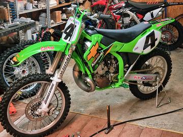 Kawasaki kx 250 anno 2000. Moto restaurata completamente nella mia officina dal telaio alla ciclistica, motore completo, freni e quant'altro. Un vero restauro a regola d'arte arte reso pubblico in vari social. Tutto documentato con foto e video della costruzione. Possibile spedizione in tutta italia. Moto pronta all uso parte al primo colpo sia a caldo che a freddo. Perfetta anche per gare d epoca.