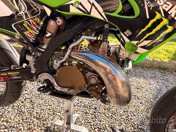 Vendo Kawasaki KX 250 due tempi, targata con doppia omologazione, moto completamente rifatta da zero, pari al nuovo come visibile dalle foto.