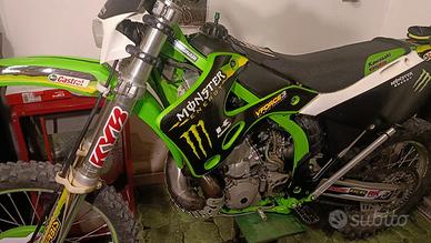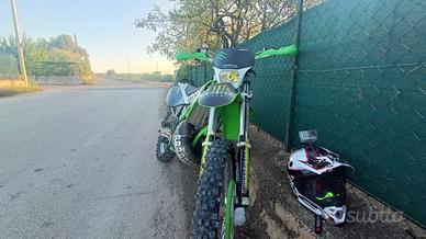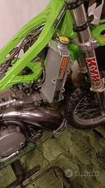 Sono montati i seguenti pezzi: radiatori maggiorati, testata HTM elicoidale per un maggiore allungo ed evita l'effetto polmone con i condotti raffreddamento maggiorati, pacco lamellare V Force 3, marmitta Domus e scarico KTM modificato, leva marce BUD, strumentazione con contagiri,contatore, temperatura, orologio, mono e forcelle revisionate rubinetto benzina con riserva con serbatoio da 9 litri motore tutto revisionato, con circa 30 ore.