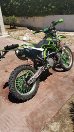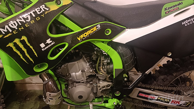 Sono montati i seguenti pezzi: radiatori maggiorati, testata HTM elicoidale per un maggiore allungo ed evita l'effetto polmone con i condotti raffreddamento maggiorati, pacco lamellare V Force 3, marmitta Domus e scarico KTM modificato, leva marce BUD, strumentazione con contagiri,contatore, temperatura, orologio, mono e forcelle revisionate rubinetto benzina con riserva con serbatoio da 9 litri motore tutto revisionato, con circa 30 ore.