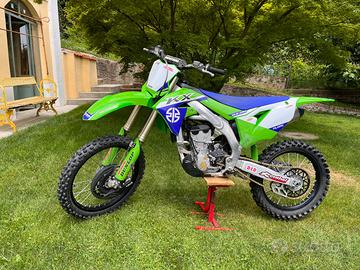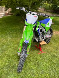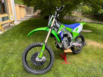 Vendo KXF del 2022 in ottimo stato, trasmissione nuova, gomme Dunlop al 90%, grafiche personalizzate applicate per proteggere le plastiche di serie. Copertina sella verde originale sostanzialmente nuova, disponibile assieme ai manuali, il cavalletto a triangolo, diversi filtri aria. Regalo piastra paramotore e para disco Acerbis. Prezzo trattabile