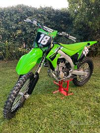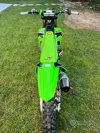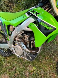 Vendo Kawasaki kxf 250 aquistata nuova a febbraio 2024 usata poco solo 30 ore, forcelle revisionate e preparate da Poletti, protezione paramotore acerbis, manuale di uso e manutenzione, 3 mappature centralina, gomme al 90%, tagliando appena eseguito.