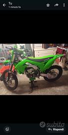 Vendo bellissima kawasaki cross kx 450 anno 2022 con 43 ore. moto perfetta comprata in concessionaria kawasaki,sospensioni già fatte.incluso nel prezzo un altro kit di plastiche e copri carter cmt.vendo per inutilizzo.