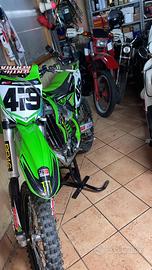 Come dal titolo vendo kawasaki 450 da cross non targata, avviamento a pedivella del 2015, tasto sul manubrio lunch control. Moto acquistata solo per uso intorno casa, mai pista. Motore rifatto dal vecchio proprietario e da quando io l'ho acquistata ho percorso circa 6 ore scarse. Da quando l'ho io solamente cambiato il manubrio con uno accossato e cambiato le manopole. Vendo per inutilizzo, ma mezzo sempre partito a prima botta anche dopo tanto tempo, sempre tenuta in garage al chiuso e mai fuori, sempre ingrassato la catena e la sua piccola manutenzione. Valuto permute con altre moto della stessa categoria però targate o di cilindrata superiore, sopratutto 690/701.