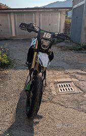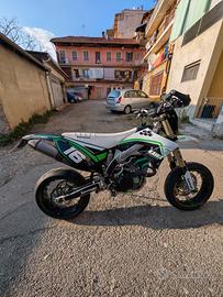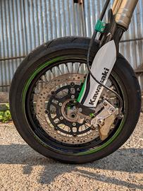 Vendo Kawasaki KXF 450 2010 con tripla omologazione (cross, enduro e motard), perfettamente funzionante. La moto ha: • Iniezione elettronica (no carburatore) • Cilindro e pistone athena nuovi (25 ore circa) • Albero motore e cuscinetti di banco (100 ore) • Forcelle anteriori revisionate e abbassate di 2 cm con taratura motard • Accensione a pedalina (parte praticamente subito siccome e dotata di un alza valvola automatico) • Gomme Diablo Rosso Corsa 4 (Ant. 95% - Post. 90%) • Pedaline nuove • Disco e pastiglie freno posteriore nuovi Tagliandi eseguiti ogni 10/15 ore con olio motul 7100 10W40, cedo anche vari ricambi generali tra plastiche e parti di motore. Non dispongo dei cerchi cross siccome li ho venduti separatamente. Le ore del motore e l'usura delle gomme puo variare siccome la moto è in uso.