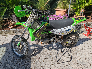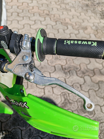 Minicross Kawasaki kx65, buone condizioni, mono rifatto da poco, sostituiti cuscinetti leveraggio, pastiglie posteriori nuove, pedane maggiorate, leve anti rottura, sella rialzata. Motore in ordine, nessun problema. Tutti i pezzi originali presenti. Cedo insieme alla moto sella originale più manubrio alto per adattare la moto all' altezza del pilota durante la crescita. Vendo per passaggio a 85.