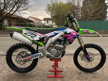 Vendo kxf 250 con 4 ore dal rifacimento del motore. In totale ne ha 74 Gomme Pirelli nuove Catena corona pignone nuovi Coprisella nuovo Grafiche nuove Freni anteriori e posteriori nuovi Forcelle e mono revisionati da preparatore Tagliando con zero ore Accensione elettrica Frizione idraulica La moto verrà consegnata con 5 filtri olio, 3 aria e varie plastiche di ricambio. Vendo per passaggio a 125 Moto con regolare documento Manuale originale Kawasaki 3 mappe Solo far benzina e godersela