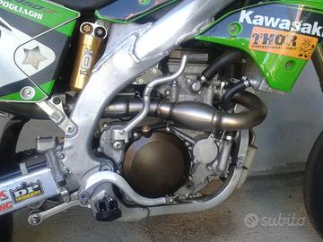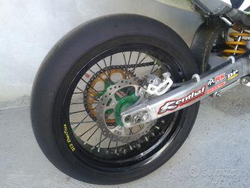 "vendo Kawasaki kxf 450 trasformata motard anno 2008, la moto ha 54 ore e il pistone è stato fatto a 50 ore, attualmente è utilizzata come esposizione nel mio negozio e viene regolarmente accesa e fatta girare regolarmente... è stata usata in modo amatoriale per uscite in pista domenicali…monta diversi accessori tra cui: