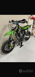 Vendo a malincuore kawasaki kx 450 F del 2013 MOTARD. La moto ha tutta la documentazione e può essere immatricolata e guidata con patente A2. È stata utilizzata solo pista (da amatore), infatti monta: - frizione antisaltellamento STM - forcella con cartuccia completa Ohlins - monoammortizzatore Ohlins - pompa radiale cobra - pinza beringer 6 pistoncini - disco anteriore bitting 320mm - piastre andreani con adattamento a fodero Sachs - scarico completo in titanio yoshimura - cerchio anteriore faba tubles 16.5 - cerchio posteriore did tubles - lift control alla forcella - monta anche la cover serbatoio in carbonio cmt - para motore in carbonio con recupero fluidi integrato Il motore è stato completamente revisionato prima della vendita per assicurare affidabilità, sono stati sostituiti i vari componenti: - pistone - biella - catena di distribuzione - cuscinetti - guarnizioni - paraoli è stata controllata la testa e fatto il gioco valvole. TUTTO QUESTO VISIBILE CON FATTURA E FOTO DEL MOTORE. Insieme alla moto cedo un altro kit di plastiche completo, e un kit per prossimo tagliando Prezzo trattabile per altre info scrivete al numero, 338 1192248 Mattia. Valuto scambio con ktm smr, husqvarna fs 450 post 2017 con eventualmente differenza di prezzo.