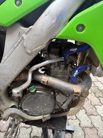 vendo kawasaki kxf 250 del 2009 con 68 ore di utilizzo da suo rifacimento dove e stato sostituito il pistone la Biella i cuscinetti di banco monta leve antirotture monta tappi in ergal tubi radiatore blu cerchi neri originali kxf