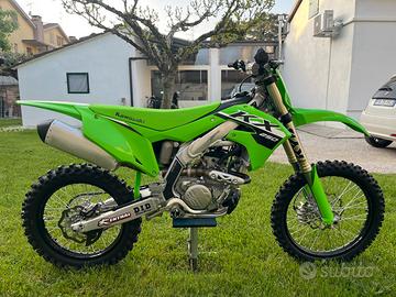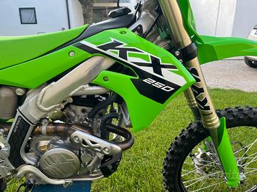 Vendo Kawasaki kxf 250 2024 ufficiale con documento, la moto ha 30 ore all’attivo vendo causa infortunio, moto perfettamente in ordine, plastiche originali nuove, gomma posteriore praticamente nuova, sospensioni rifatte cambiate anche le molle messe più morbide più paraoli skf con olio kyb con un’ora, appena tagliandata, cambio olio e filtro ogni 5/6 ore, freni ancora nuovi, gomma anteriore ancora buona,trasmissione ancora perfetta, in più due filtri aria di scorta di cui uno nuovo un kit di plastiche con grafiche, più manuali di manutenzione,le foto sono aggiornate e già dicono tutto. Non scambio e no perditempo! Se volete vedere altre foto scrivetemi. Prezzo trattabile