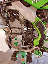 Moto in ottime condizioni generali, motore rifatto 64 ore , gommata anteriormente al 40% e posteriormente all' 80% , sospensioni rifatte, tagliandata , kit di trasmissione al 90% , corona e pedane maggiorate in ergal verde , manubrio RENTHAL, protezioni varie, cruna passa catena ACERBIS verde