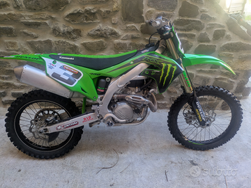 Vendo kxf 450 2020 moto con 125 ore, pistone e catena distribuzione fatti a 95 ore tutto dimostrabile con pezzi vecchi. Sospensioni preparate, forcella con 5 ore , sella antiscivolo, paramotore acerbis, cuscinetti di sterzo nuovi. Do insieme filtro aria e olio di ricambio, kit di guarnizioni originale, manuale originale, pattino scorri catena di ricambio nuovo.