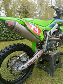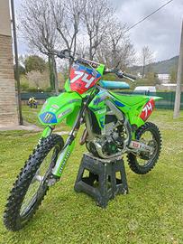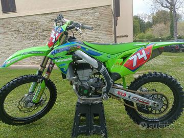 vendo Kawasaki kxf 450 in perfette condizioni 90 ore totali e pistone sostituito a 75 insieme a catena distribuzione e trasmissione, sospensioni preparate e tutto quello che si vede in foto, sella nuova pedane parti cmt in carbonio scarico e altro, compresi pezzi originali. Per qualsiasi informazione 3286483123 Elia